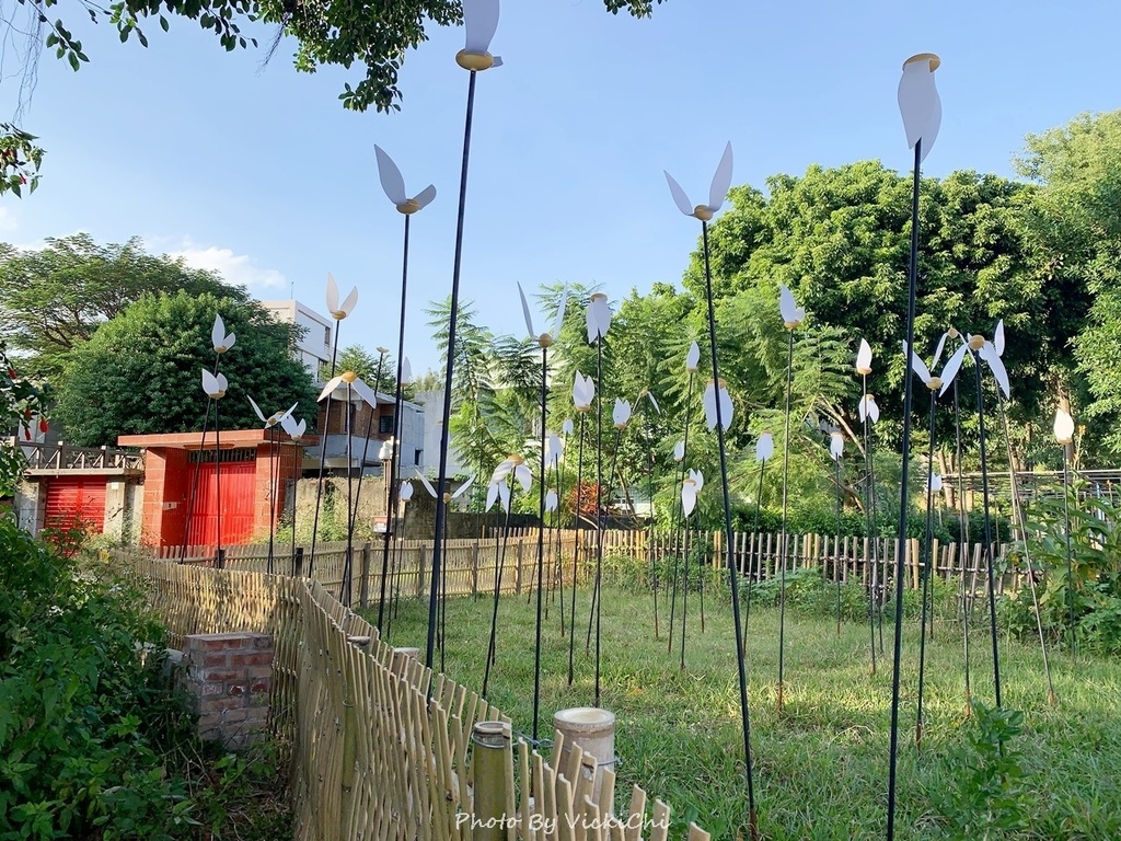 還外一邊則是藝術家的「候鳥飛回家」裝置藝術作品,特地圍上竹籬笆,藝術家把候鳥南遷度寒冬的習性,象徵離家的遊子始終嚮往回到溫暖的家鄉,也意喻三重一村的眷民想家的意境。其實隨著時代變遷,眷村的後代幾乎很少看到竹籬笆,後面是目前閒置中的眷舍。