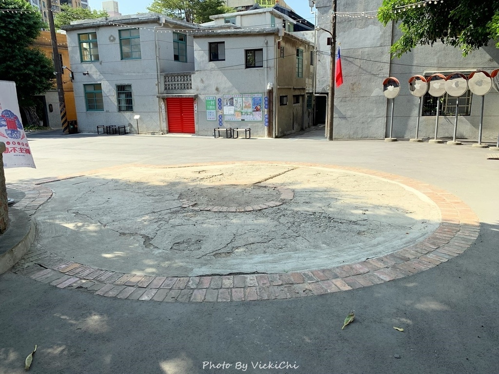 空地的另一側則是特級眷舍,比起前面的壅擠房舍,這裡可就大了許多。地上還遺留著日據時代的砲陣地遺跡,這是日軍當時為了防禦盟軍的空襲,在三重興建了防砲陣地,其中的一個離現在的總統府,最近的防砲陣地就是三重一村的位置。