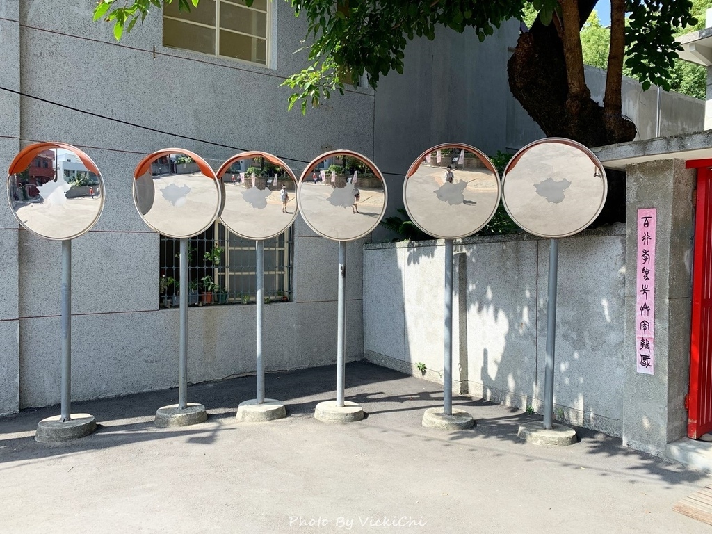 聚集了許多面反光鏡,每一面的反射鏡中間都有中華民國的早期地圖(中華民國地圖跟中華人民共和國地圖是不一樣的,中華民國地圖把蒙古國納為版圖之一)。這是藝術家設計故鄉.異鄉的裝置藝術,在那個充滿不確定的艱難年代,對於新移民來說,一時回不去故鄉,對於第一代的居民是希望,是生存的唯一動力。