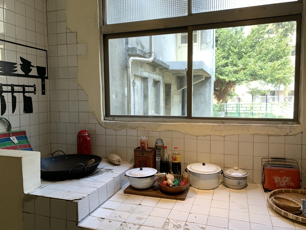 當時只要淹水,大人就會把小孩子拎到閣樓去,大人則在下面用水桶清除家中的積水。目前裡面的隔間大多拆除,不過從原有的壁面、地坪材質還是可以看出原來的格局。會覺得這裡雖是乙級眷舍,但覺得格局有點小,其實這裡本來是呈L型10坪的平房。