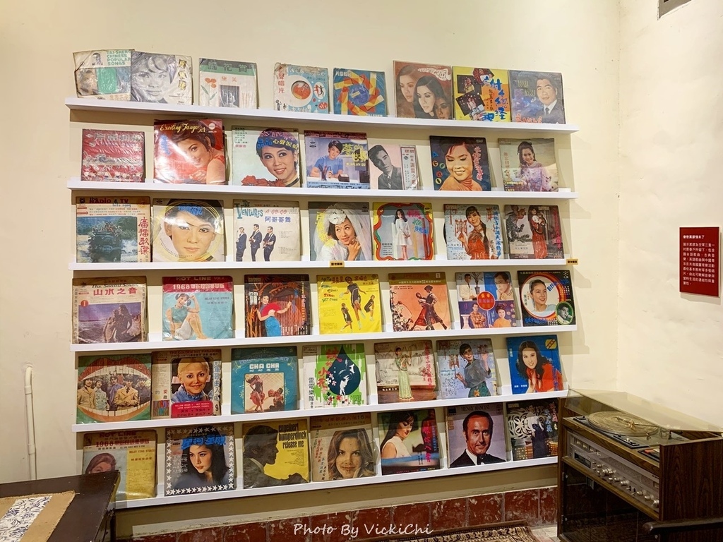 另一展間則是「記憶留聲,黑膠情緣」,在民國1952年許石的大王唱片在三重設置製片工廠,之後有近50間唱片工廠陸續進駐匯聚於此,帶動台灣音樂產業的發展。牆上陳列好多黑膠唱片,一旁還放台老式黑膠播放機。