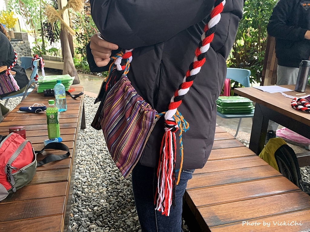 情人袋不能隨便配戴的,部落夥伴提醒配戴方式,一定要從右肩到左腰,斜背在身上。如果弄反了則是家裡有喪事。做好的情人袋,在部落的幾天和之後出去玩,成為我的隨身小包包。