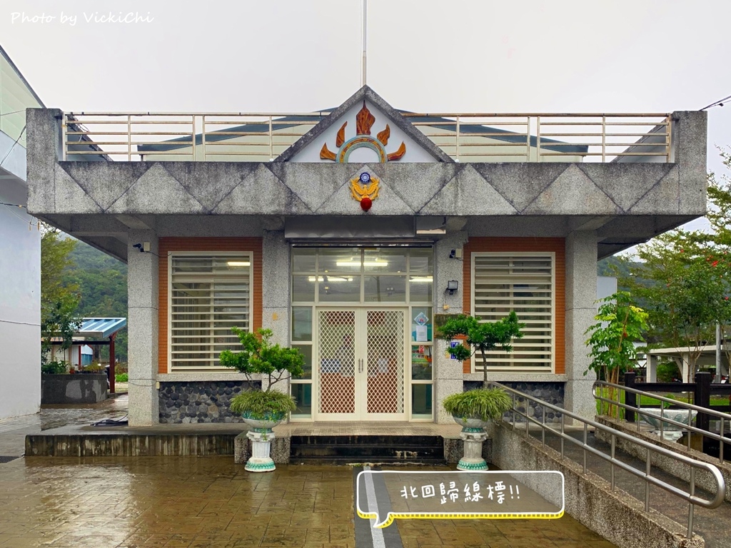 春日派出所最著名的景點,北回歸線標和旁邊的齊柏林紀念樹。派出所外觀結合當地部落的特色,在大門上方彩繪了阿美族圖騰「旭陽」。這裡也是花蓮鐵馬驛站的其中一個據點,提供單車族茶水、打氣(人或是腳踏車都可以!)、簡單梳洗、旅遊諮詢等服務,單車族到這裡都會短暫停留打卡休息。