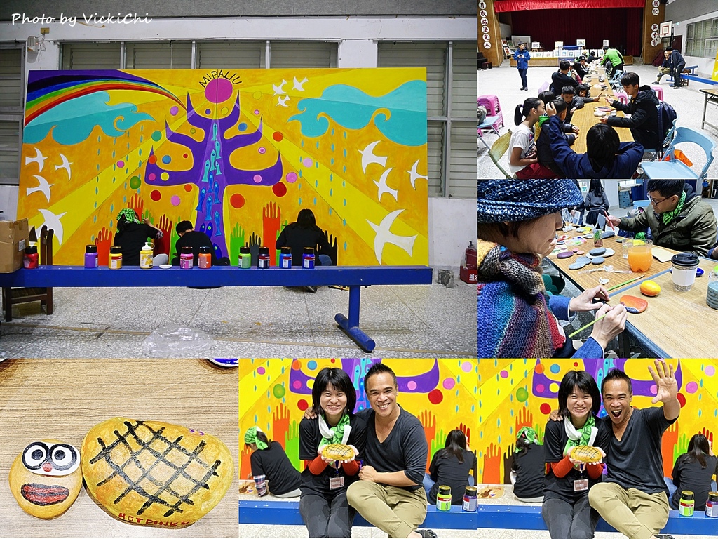 到春日國小的禮堂,彩繪早上撿來的石頭,彩繪石頭也是裝飾部落的禮辦供處。看著要彩繪的石頭,沒有什麼靈感,畫個波蘿麵包,果然是愛吃族。哈哈!