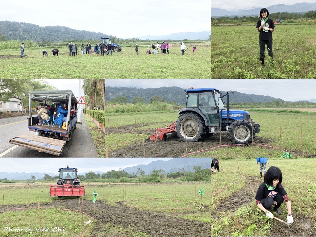 接著我們跟著偉峰哥到種滿葛鬱金的田地,採收葛鬱金(阿美族語:Alida)。葛鬱金是原住民傳統作物,葛鬱金又叫做粉薯、竹芋、太白筍。採收期主要是在11月到隔年的2月,葛鬱金的實用價值高,含有豐富的澱粉、碳水化合物和醣類,有利尿、清熱健腸等特性。在早期可是糧食的替代品或製作澱粉的原料。