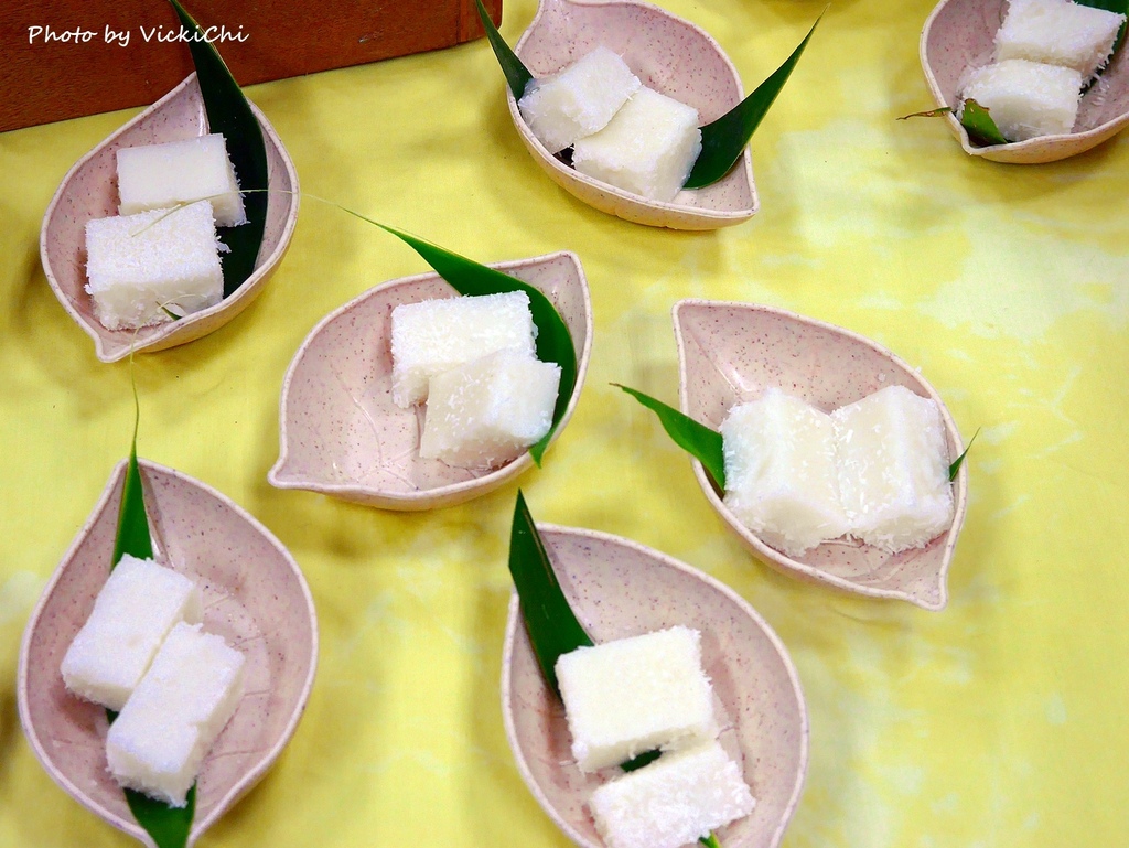 甜點是織羅部落地區限定的葛鬱金雪花糕,雪花糕撒上椰子粉,吃起來甜甜帶點QQ感的。