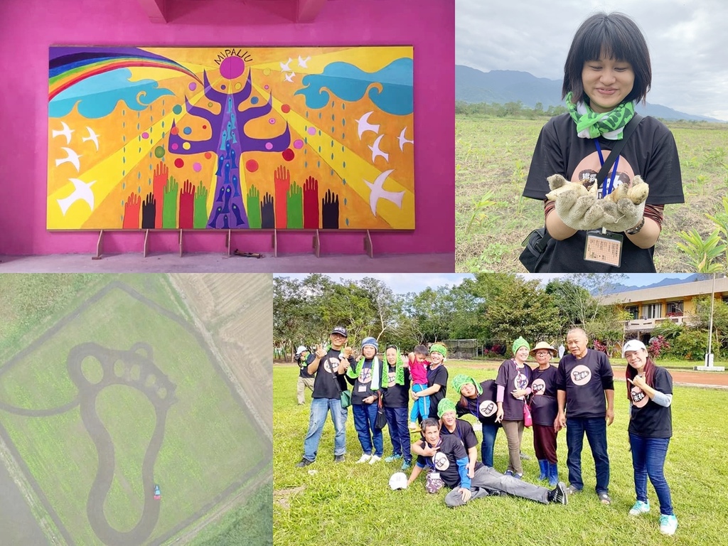 部落第三天的重頭戲就是大地彩繪-田間腳印。田間腳印的構想來自於齊柏林的看見台灣,當時齊導想在玉里的稻田空拍出大腳印畫面,因為這裡沒有電線桿,於是和部落夥伴合力在玉里的田地畫出九個腳印。當時齊導的構想,大家都在想該怎麼執行?還好有個畫腳印幕後的強人,就是部落的曉奫哥。