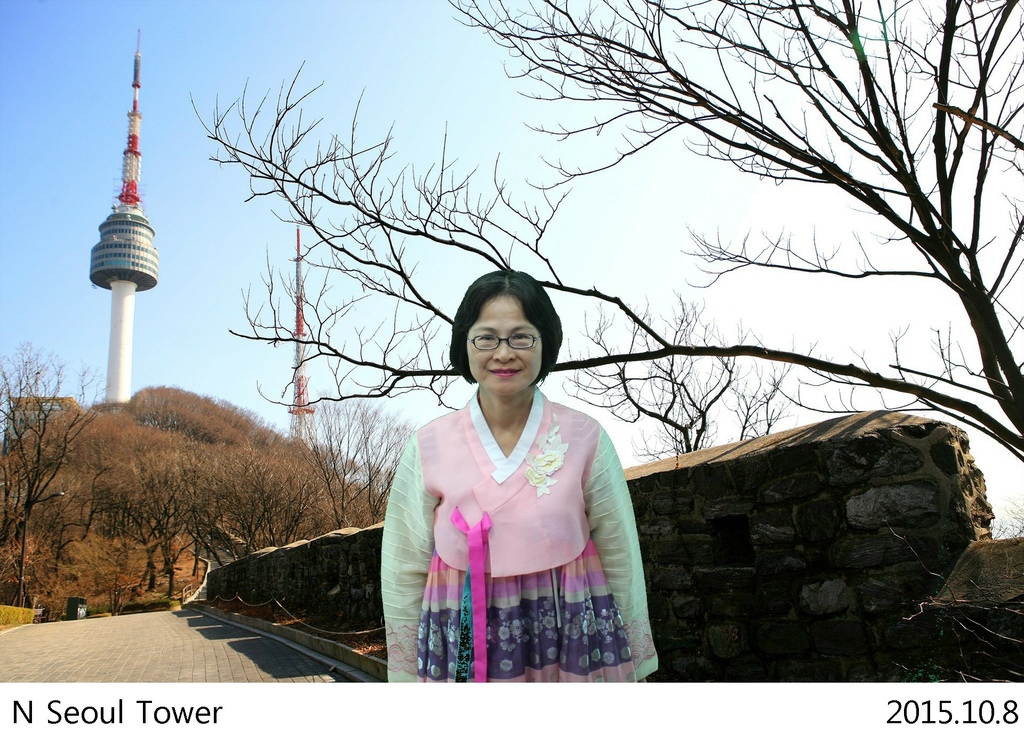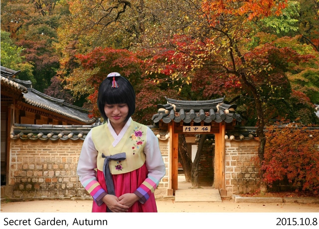 選了秋天的韓國作為背景,沒想到合成照片蠻漂亮的。