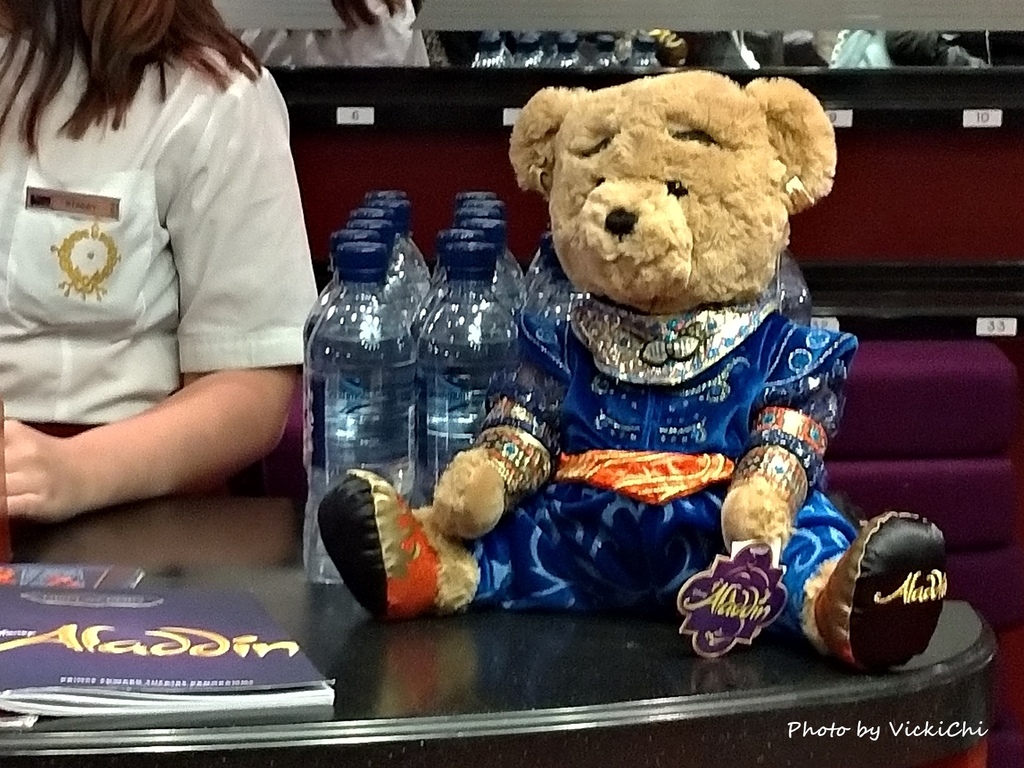 現場也販賣了很多有關阿拉丁的周邊商品,我覺得最可愛的就是表情無辜的神燈熊。音樂劇演出開始後禁止攝影拍照,不過中場休息的時候可以拍照。