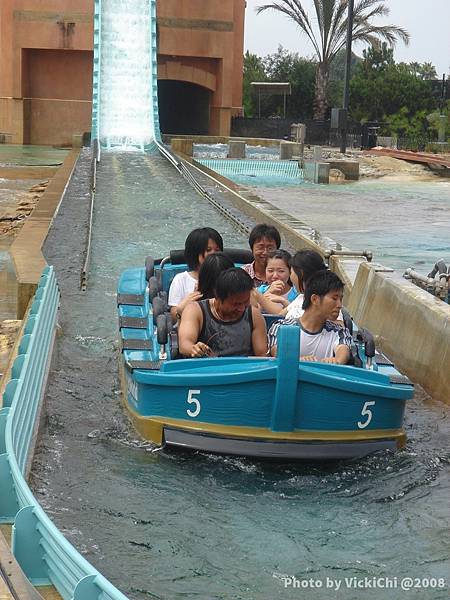我們去排泛舟,看每個人進去出來,全身都濕的。想說我一定要挑一個好位置,終於到我們上去,趕快找位子坐。船一直撞阿撞,換我背對的時候,感覺很害怕,看不到前面,不知道接下來發生什麼事情?