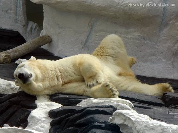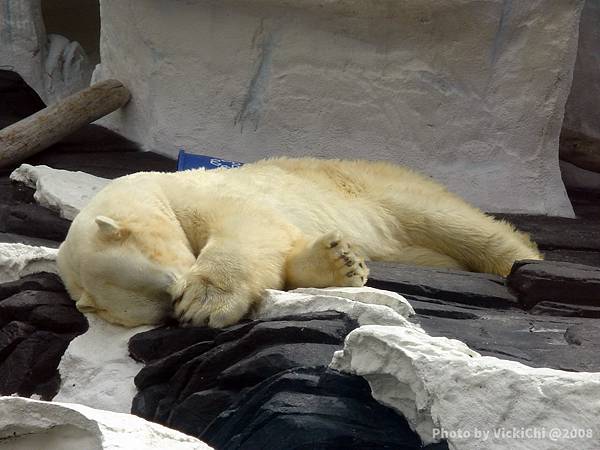 海洋世界裡面,我喜歡到北極熊區看北極熊,進去看北極熊,要先去體驗虛擬的值深機坐艙,再去看北極熊。北極熊睡覺還打哈欠,拍到一半,他還抬腳。好可愛歐~