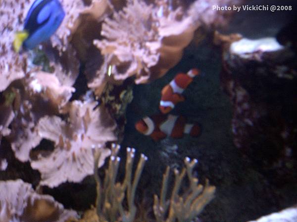 在海洋世界就是看海豚看鯨魚、玩遊樂設施(泛舟和雲霄飛車),我們計畫從最裡面逛出來,我們到水族館去,原本以為會有海底隧道的說,結果是一個一個的水族箱,我還摸了一下海星。