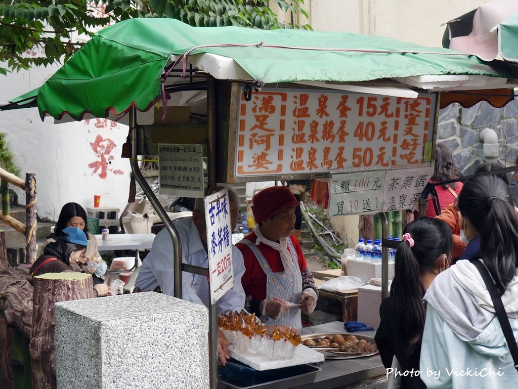 地熱谷入口處旁邊的「滿足阿婆」的溫泉蛋攤位,這裡賣溫泉蛋、鵝蛋、鳥蛋還有麥芽糖,吸引很多遊客在這裡排隊購買。在地熱谷周遭也有其他的攤販賣溫泉蛋,就看喜歡哪一間囉!不過,我喜歡半熟蛋,看到旁邊的遊客剝溫泉蛋,發現這裡是全熟的,就打消念頭。