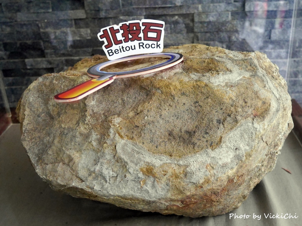 地熱谷小舖前面擺放北投石,供來往的旅客參觀。