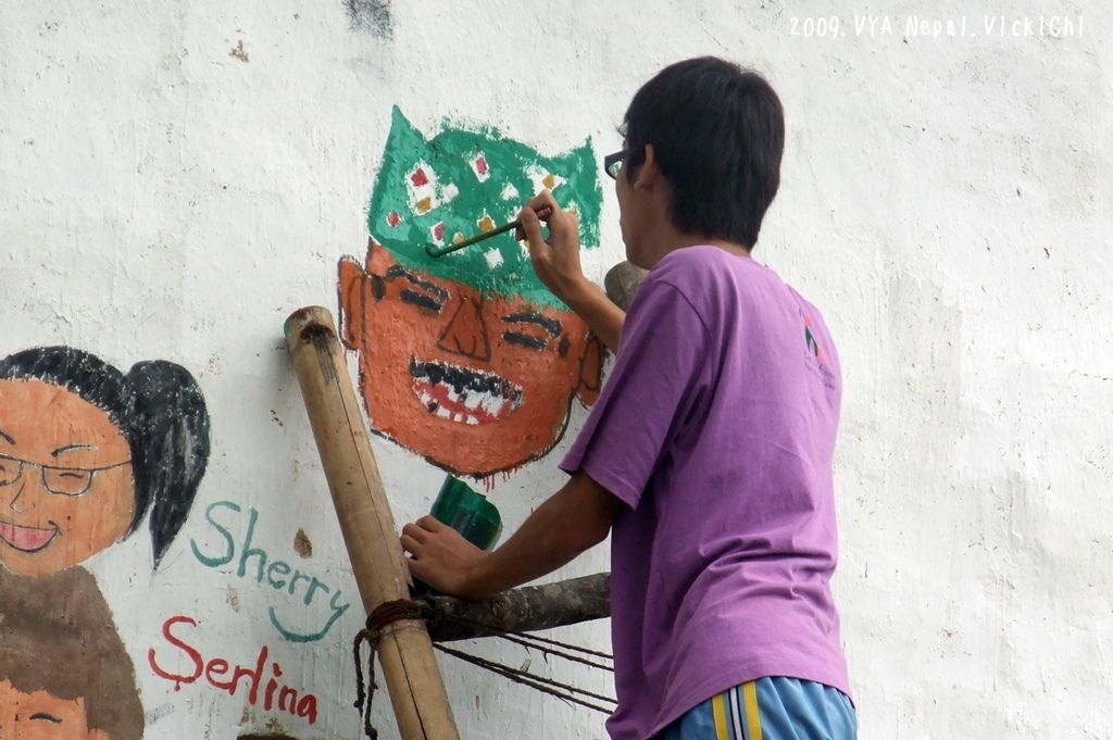 〃2009尼泊爾VYA國際工作營5:開闢森林防火線、小學服務和村活動中心彩繪