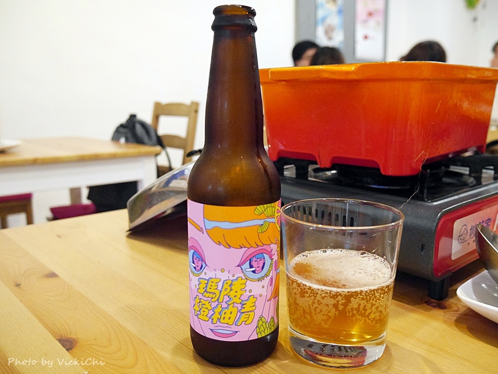 另外一款啤酒,偏愛水果口味的我,選了「瑪陵橙柚青」啤酒。這款啤酒把萃取後的文旦柚子皮的精油與帶有柑橘香氣的啤酒花一起冷泡, 讓低溫發酵形成獨特的香氣。帶點柚子、金桔的香氣,喝起來略淡的苦味,粉紅色的酒標貼紙超級可愛。