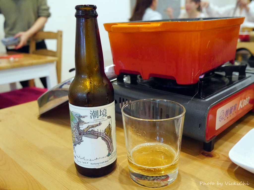 一邊吃著漁夫鍋一邊啜飲啤酒,「潮境」啤酒是將石蓴(ㄔㄨㄣˊ)綠藻粉以「乾投」的方式投入麥酒中,與特選過的美系啤酒花香氣充份調和, 聞起來有顯著的酒花及滲入些許「大海氣味」,喝起來口感非常清爽。