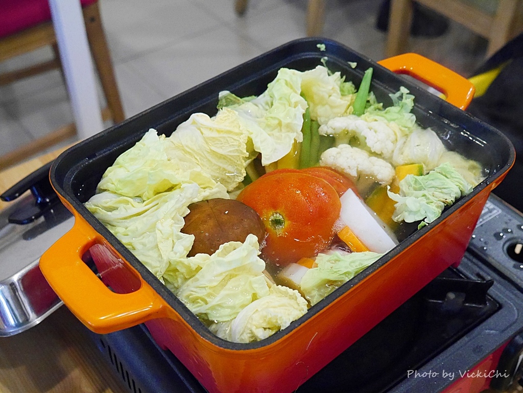 事先預約的漁夫鍋,一抵達餐廳,看到漁夫鍋和蔬菜盤在桌上迎接我們,食材都是老闆當天一大早到市場採買的新鮮食材,這裡的漁夫鍋的食材是有下鍋順序,照著老闆的順序,跟著品嘗一輪食物本身的新鮮美味。