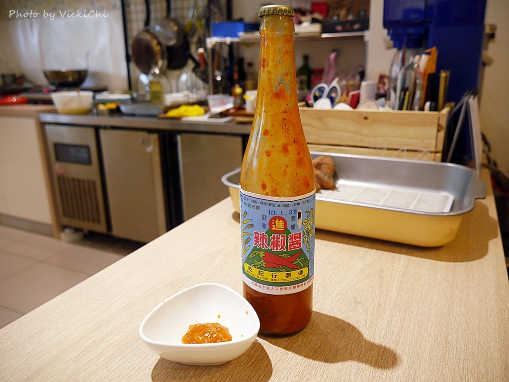 店內沒有提供沙茶醬,提供了基隆在地獨門醬料「丸進辣椒醬」。這款辣椒醬在基隆的麵攤小吃店都會看得到,味道像甜的豆瓣醬,不會非常辣。怕辣的人可以放心食用。