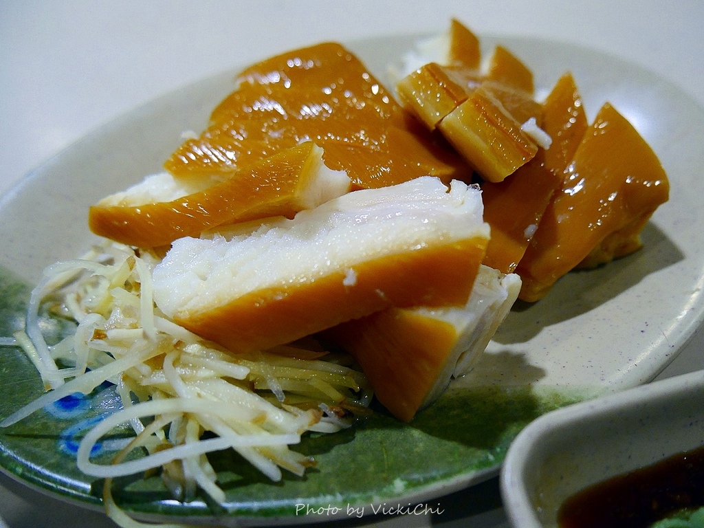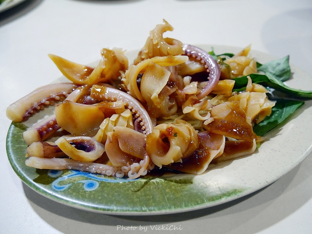 超喜歡汆燙魷魚,雖然看起來簡單,川燙時間跟火侯的拿捏都要控制得宜。超大份量的魷魚,沾點芥末佐醬,脆口好吃。