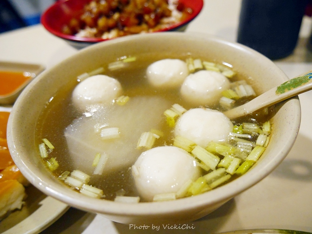 吃了濃郁的雞魯飯,就要來點湯。鱈魚丸湯非常好喝,蘿蔔燉的超爛,湯的味道鮮美,然後40元的湯,好幾顆鱈魚丸,看的吃的心情超好。