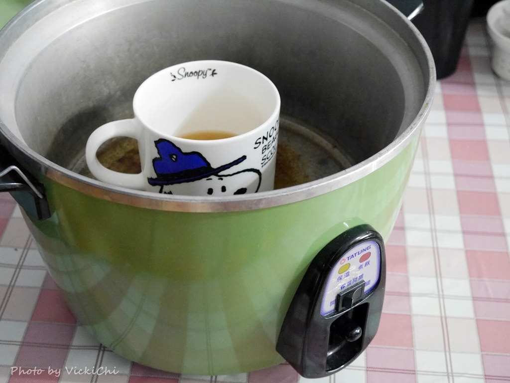因為大成醇粹雞精採冷凍保存,我都會先拿出來解凍後,倒入杯子裡,用電鍋加熱。把雞精倒入大杯子裡,大包裝的大成醇粹雞精每包100ml,是一般市售雞精容量的兩倍量,量大多為每包45~60ml,大容量包裝,喝起來有大份量的感覺。