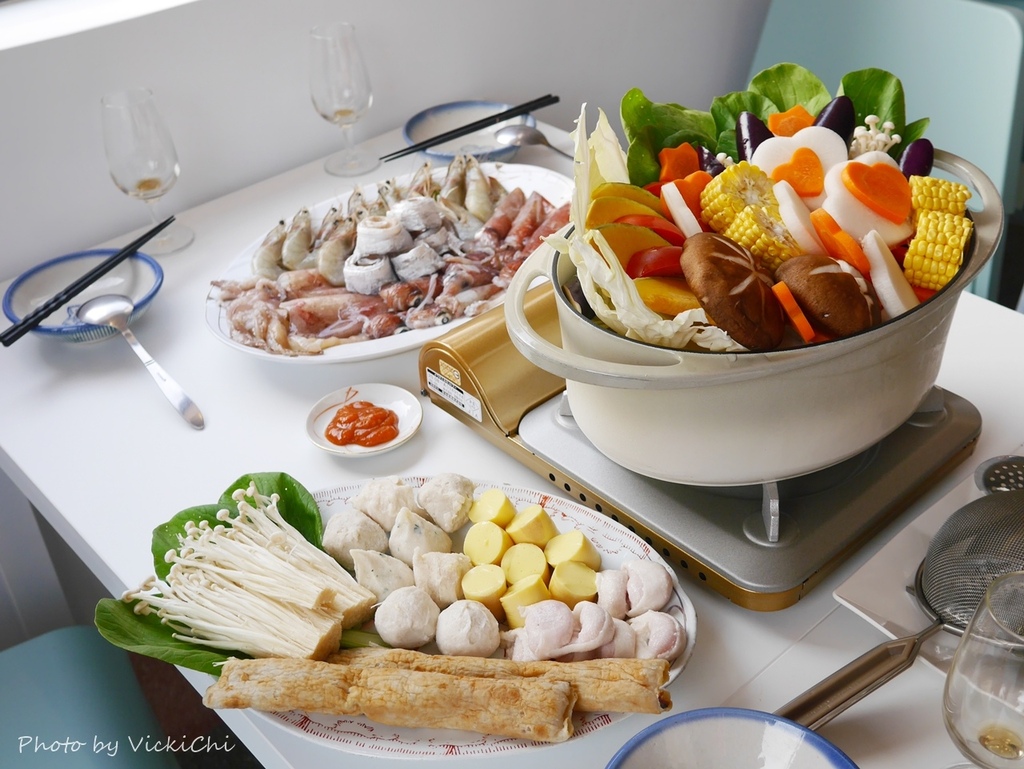 自從在基隆吃過漁夫鍋,越來越懂得吃魚夫鍋的順序,從鍋內的蔬菜開始吃起,接著吃上火鍋料,最後再來是海鮮。看到一盤滿滿的基隆在地的吉古拉、蛋腸和三記魚餃,超級開心,我超喜歡吃基隆在地的神秘食物。