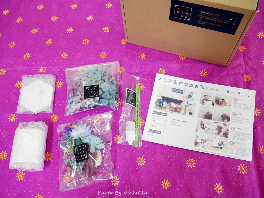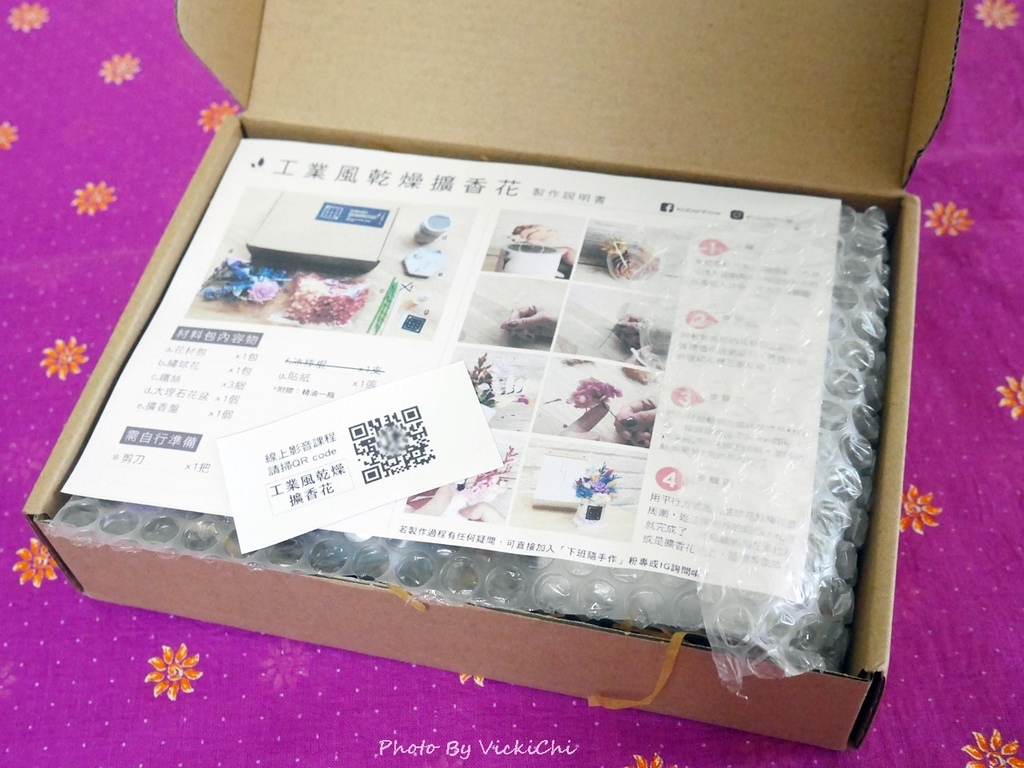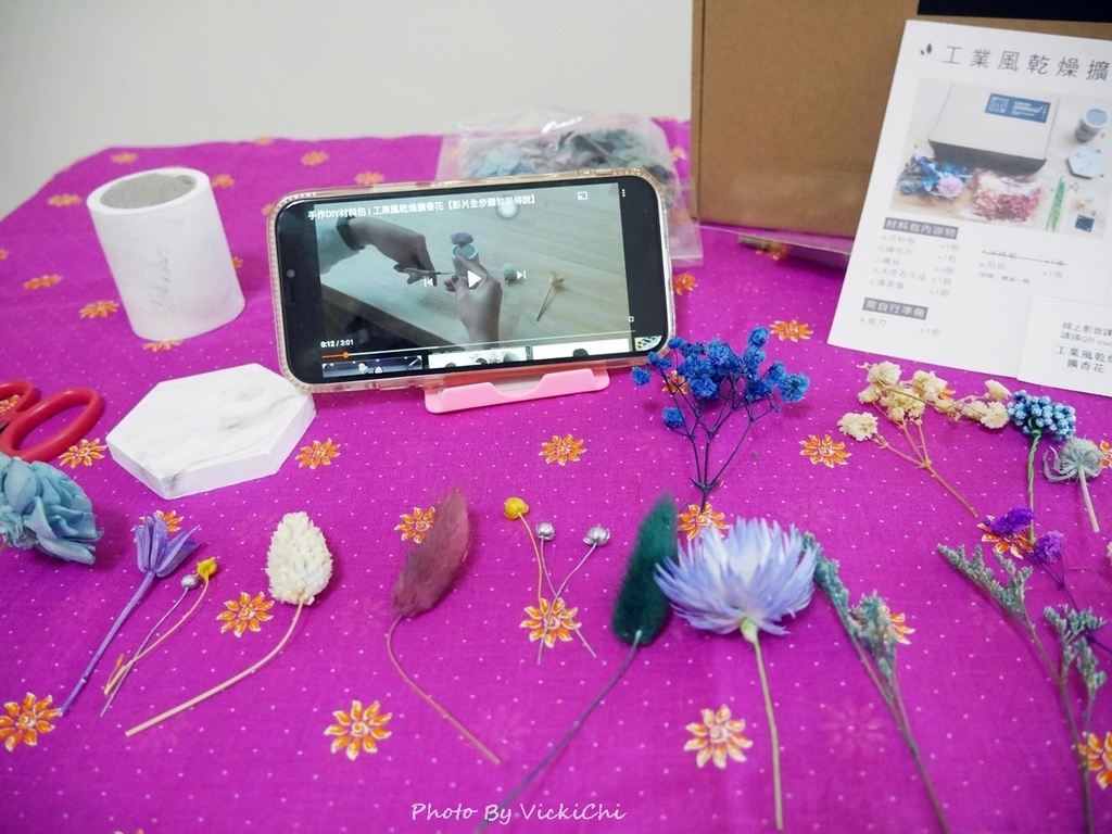 這次和KKday推出的防疫應援限時免運DIY材料包,有蠟燭、擴香石、手工皂、多肉植物等課程的選擇,隨材料包附上的線上影片教學連結,剛好一直想要買擴香石,選擇工業風乾燥擴香花的課程。