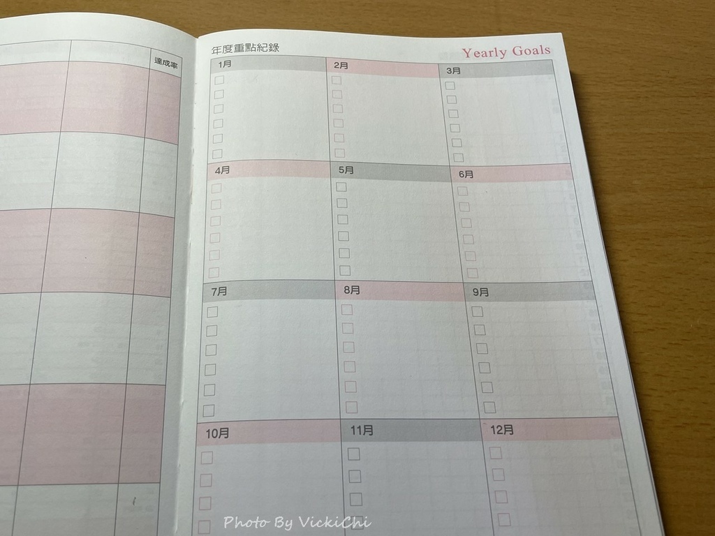 我會在前面兩個寫下想完成的目標,下面的1年後、3年後,抱持著「事事難預料」的心態,把它改成第1季到第4季,把目標劃分成四季追蹤,提高達成率。