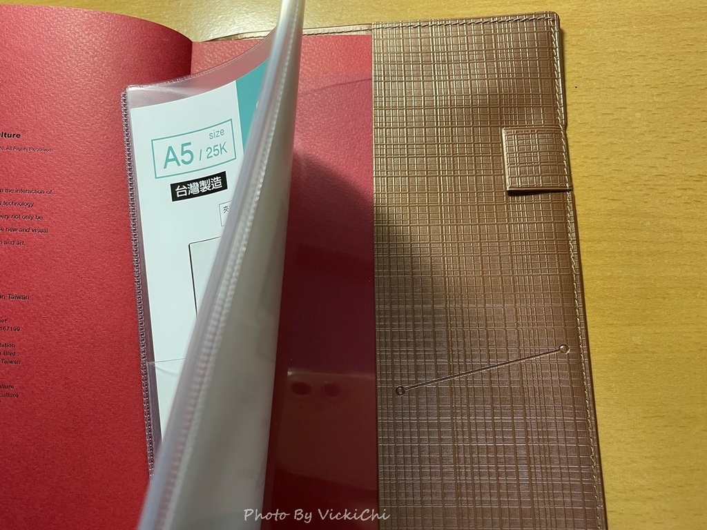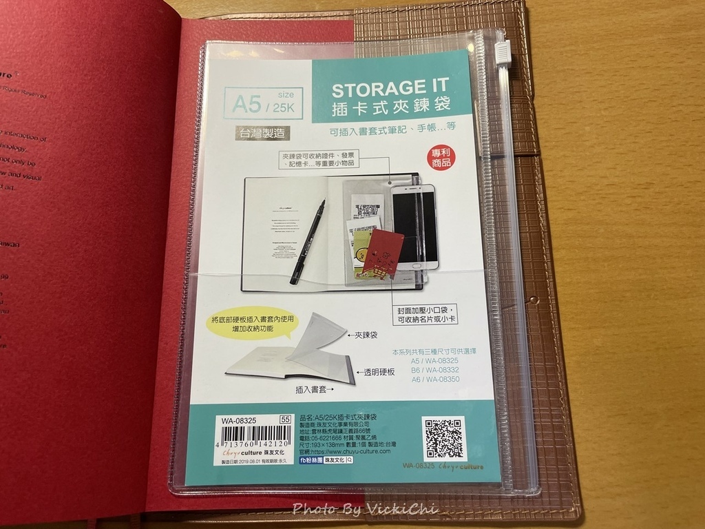 這次手帳還添加新道具:「插卡式夾鍊袋」,只要將底部硬板插入書套內使用就可以。夾鍊袋增加手帳的收納功能,舉凡便利貼、名片、分裝的紙膠帶等等都可以放進這個夾鏈袋裡面。
