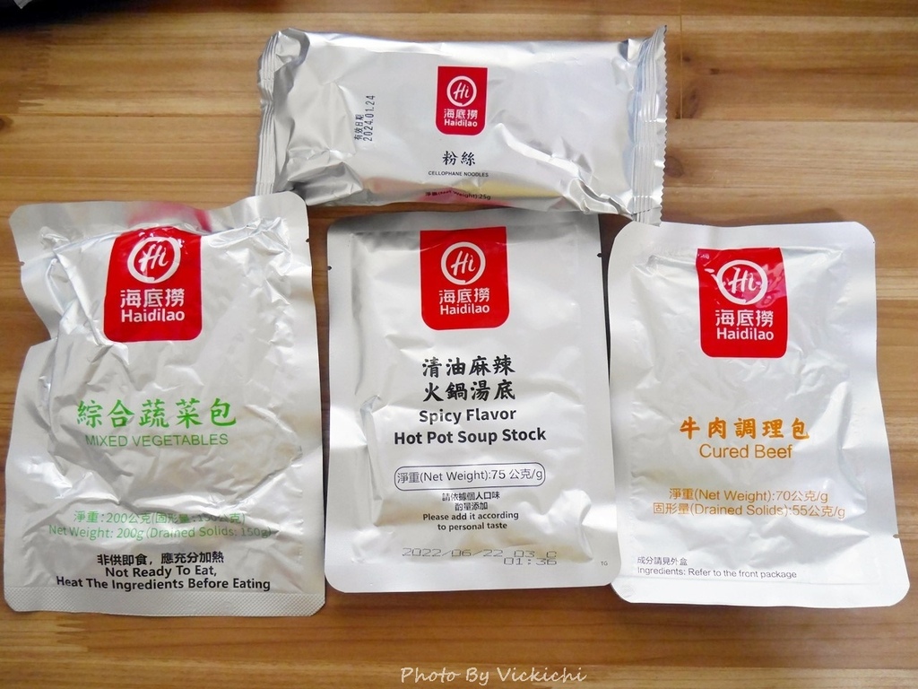 調理包部分,有綜合蔬菜包、清油麻辣湯底包、牛肉調理包和粉絲,單人份的份量剛剛好。