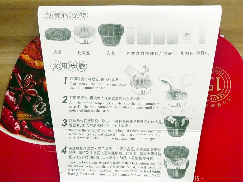 隨鍋附上食用步驟說明,只需把所有材料包都倒入白色的內鍋,非常簡單。