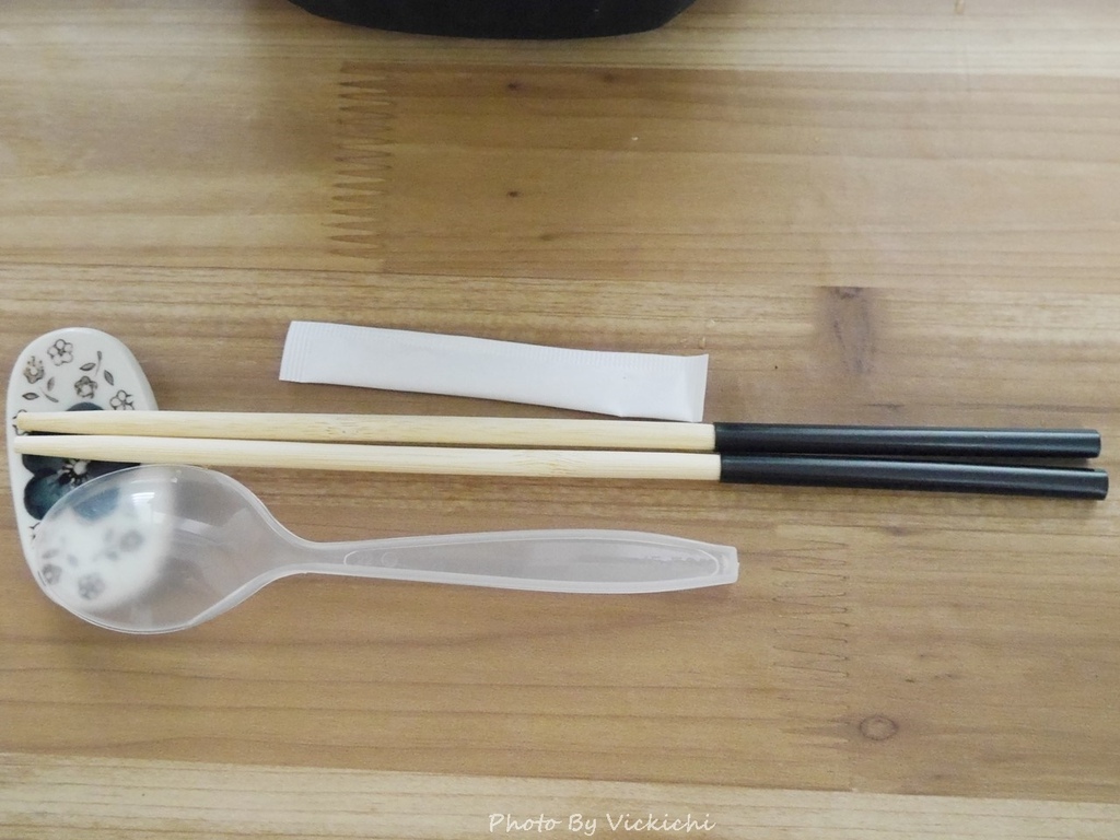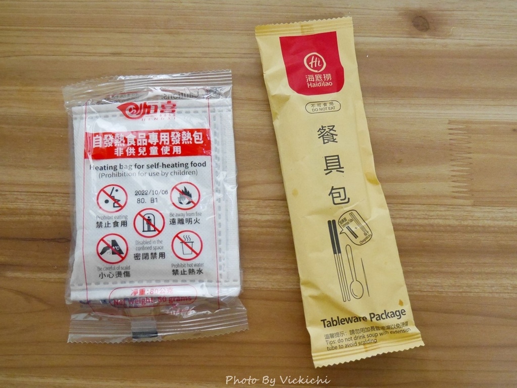 另外,還有一包石灰粉的發熱包和一組免洗餐具。餐具組裡面的筷子,是半截竹筷和半截式像吸管的黑色塑膠套組合起來,我覺得不好使用,直接換成平常用的餐具比較方便。