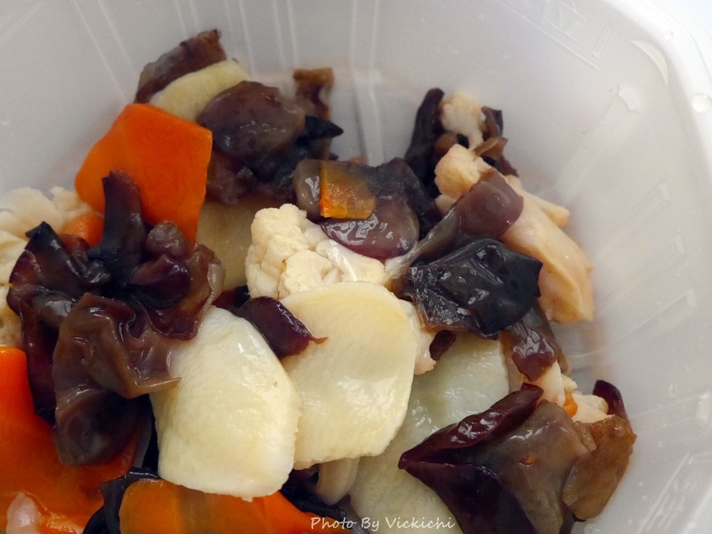 打開綜合蔬菜包,裡面有馬鈴薯、黑木耳、白花椰菜、紅蘿蔔,份量蠻多的。
