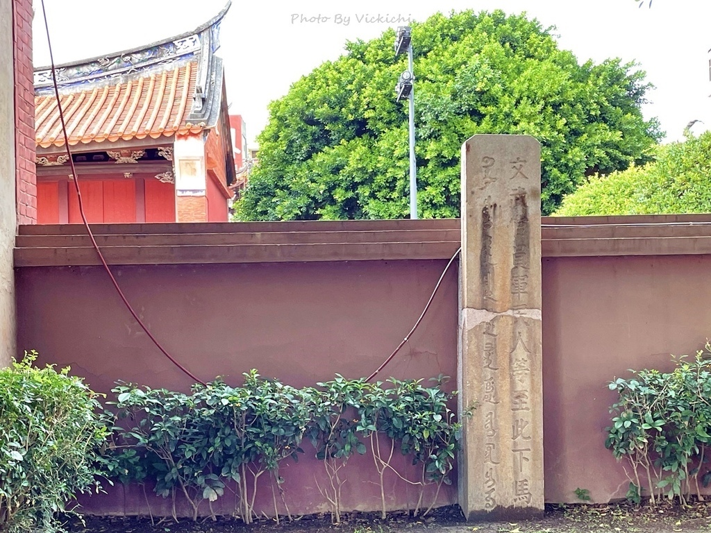 在孔廟右側的草皮上,有塊幾乎看不出上面文字的下馬碑,用中文及滿文鐫刻刻著「文武官員軍民人等在此下馬」。在古代,不論何人至此皆須下馬步行以示對此的誠敬之意。