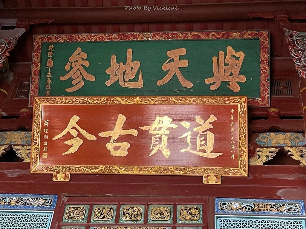 進入大成殿內,上有珍藏清朝歷代皇帝所頒贈的古匾,分別有雍正的「生民未有」、乾隆的「與天地參」、嘉慶的「聖集大成」,以及咸豐「德齊幬載」和同治「聖神天縱」等匾額。