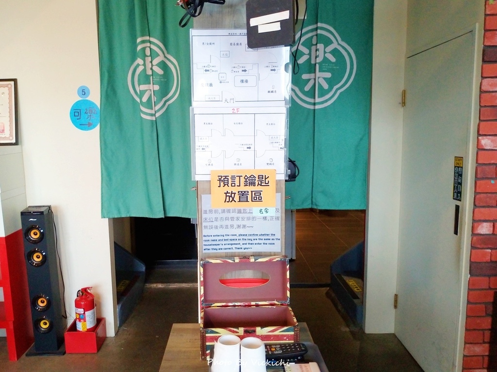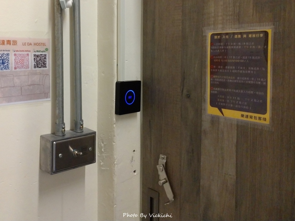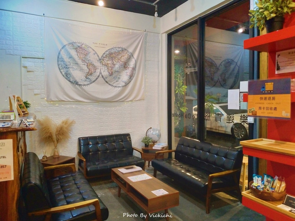 旅店基本上採自助式入住,完成訂房後,樂達青旅會要求加入官方Line,這樣小幫手就會在Line上回覆旅店的密碼,方便進入旅店。一進去一邊是櫃台另一邊則是公共區域。