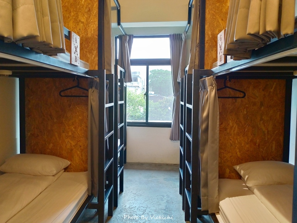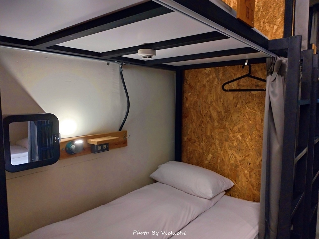 雖然是上下舖,每個床位都有床簾,提供了房客一定的隱密性,不用擔心睡相被人看到和即使晚上其他房客開了大燈也不擔被影響到。床邊還有小型置物櫃、電源插座、掛勾、閱讀燈等,小小床位應有盡有。