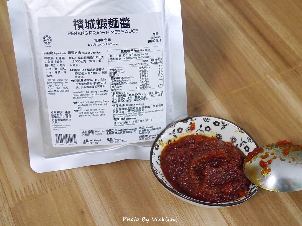 蝦麵醬可是蝦麵風味所在,一打開包裝,撲鼻而來的味道類似沙茶醬,由於蝦麵醬裡面含有鮮蝦精華,伴隨著蝦味,味道比沙茶醬更濃郁,顏色也更為艷紅。只要一包檳城蝦麵醬,就可以輕鬆煮出馬來西亞道地美食蝦麵。