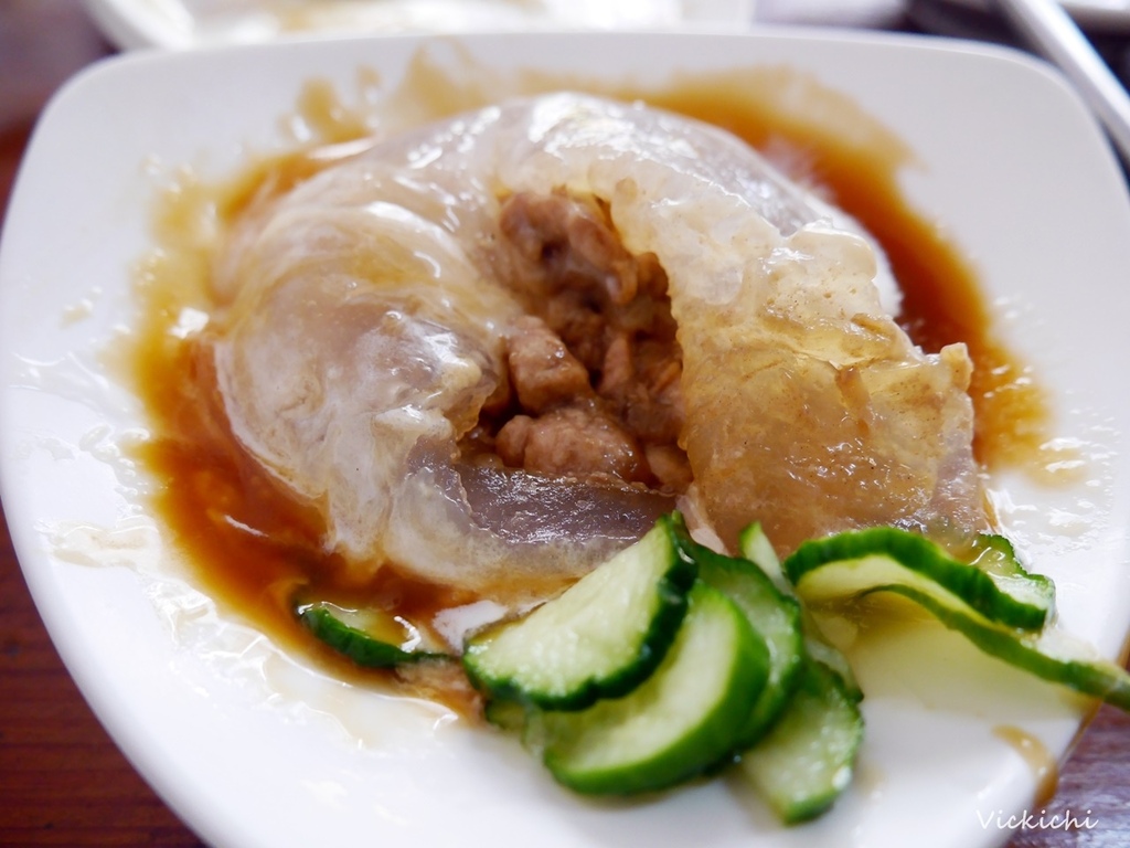 涼肉圓是讓店家起家的招牌肉圓,蒸過的肉圓,內餡包著豬肉塊和豆薯,再淋上麻醬油膏、美乃滋和蒜泥。特殊的醬汁搭配爽彈的滋味,大受歡迎,每每涼肉圓一出場,很快就銷售一空,我只有點一顆涼肉圓,吃完頓時後悔,當初應該要點一份,吃完想要加點,門都沒有啊!
