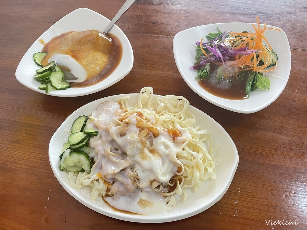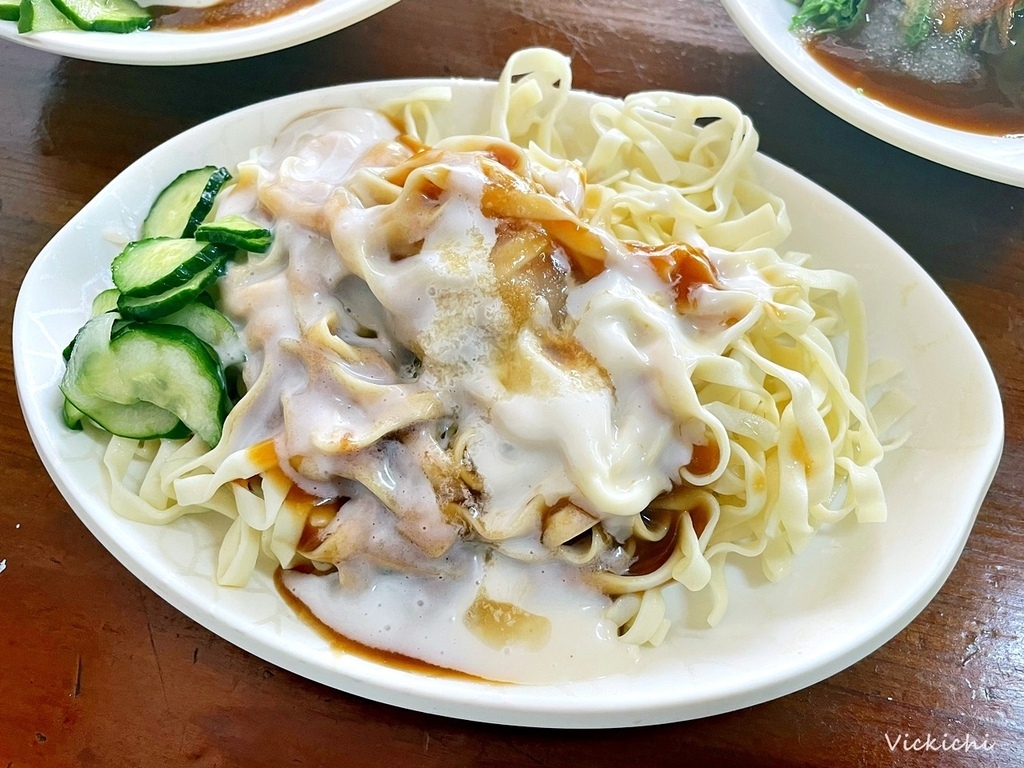 涼麵是我尋找嘉義美食的時候,才知道原來在嘉義,會把美乃滋稱作為「白醋」,在嘉義搭配的調醬有3種:自煮醬油膏、純糯米磨漿再加二砂糖熬煮的甜米醬,與最具特色的美乃滋。而南門的涼麵,使用的是寬版的意麵,意麵可以讓醬汁更好附著在麵體上,端上桌前再搭配簡單蔬菜。