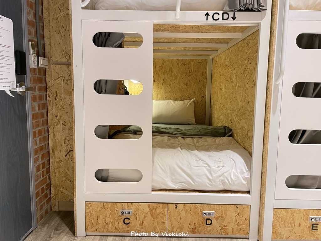 住青年旅店,我喜歡睡在下舖,不用爬來爬去比較方便。入住前,請小幫手幫我留下舖的床位,置物鎖櫃偏小,放不下大包包,只好暫放在床尾。整個空間雖然小但不至於有壓迫感,我覺得還不錯。