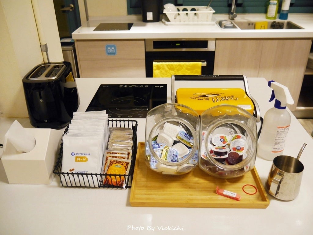 交誼廳裡該有的設備應有盡有,我很喜歡小廚房的設計。交誼廳每天早上都會提供牛奶、吐司,果醬和奶油及茶包和濾掛咖啡。
