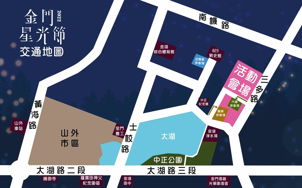 除了可以開車前往外,在山外車站可以搭乘接駁車到活動會場,發車時間:17:20、17:50、18:20、18:50、19:20、19:50、20:10(以公車實際發車時刻為準),我們在太湖旁的展場入口處下車,步行進入會場。