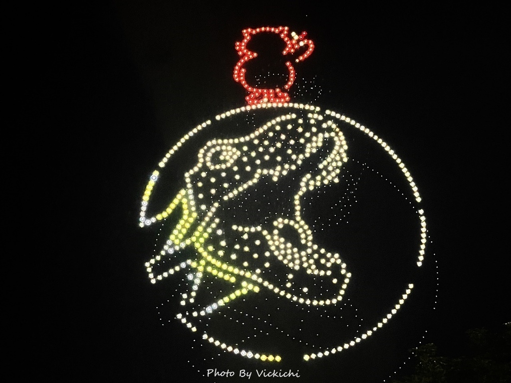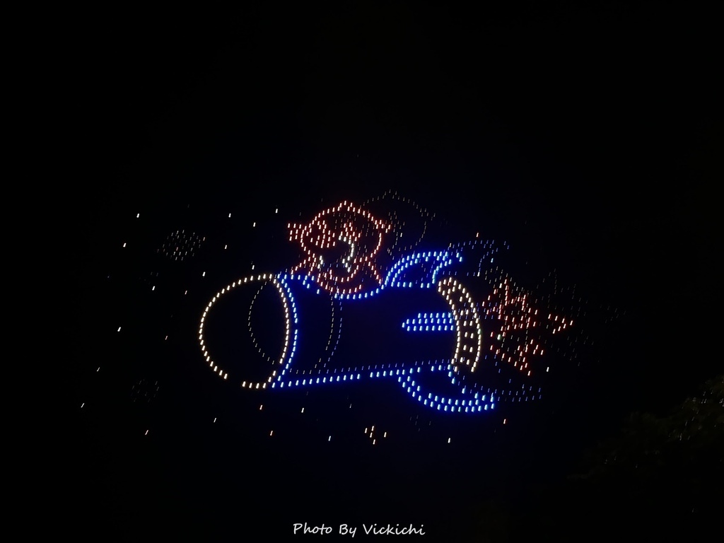 這次金門星光節的無人機表演有兩個主題,我看到的是以「星際迷航」為主題,由金門觀光大使水獺「阿特」乘坐太空梭,隨著耀眼星光進入恐龍星球,進行太空旅行。這是我在看完無人機表演後,看到官方資料才乘坐太空梭的竟然是水獺,我一直以為是小豬。