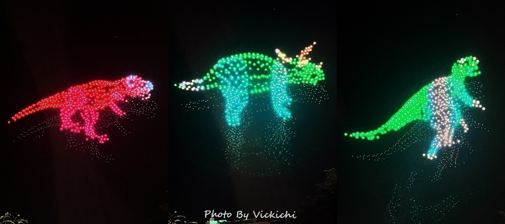 正當沉醉於無人機的燈光,沒想到恐龍出來後就結束了!短短的6分鐘的無人機燈光秀展演,到最後,看著無人機一台一台往下墜,看完讓人有點空虛感。但是,不得不說整個展區非常地漂亮,還是值得一來!!