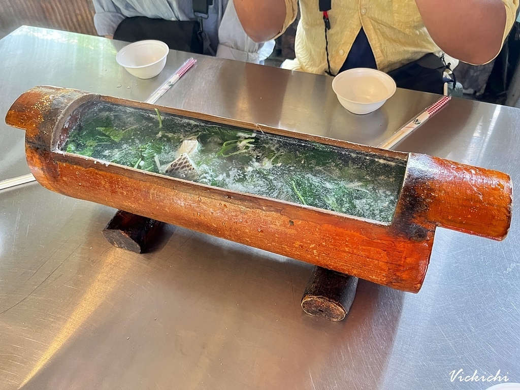 即使不放鹽,石煮鍋的湯頭非常美味。其實,石煮鍋的作法非常簡單原始,從食材到器具都能就地取材,阿美族人從前出外狩獵、工作時,只要帶上一包鹽巴,就能煮出一鍋美味的料理,根本就是隨地就是餐廳的概念,哈哈哈!