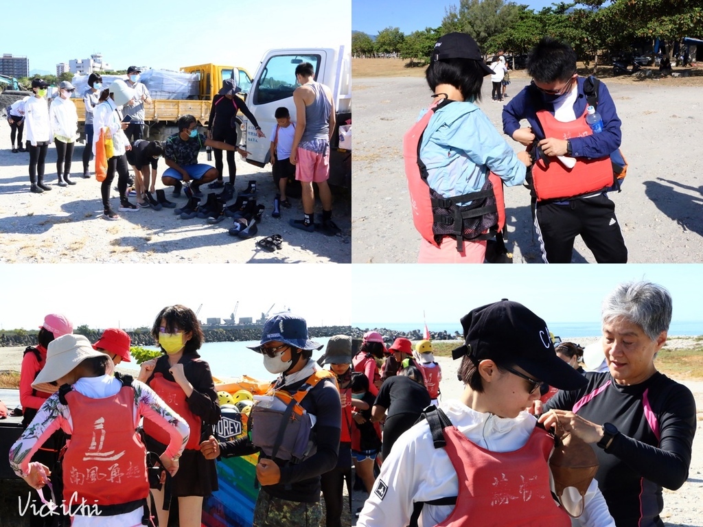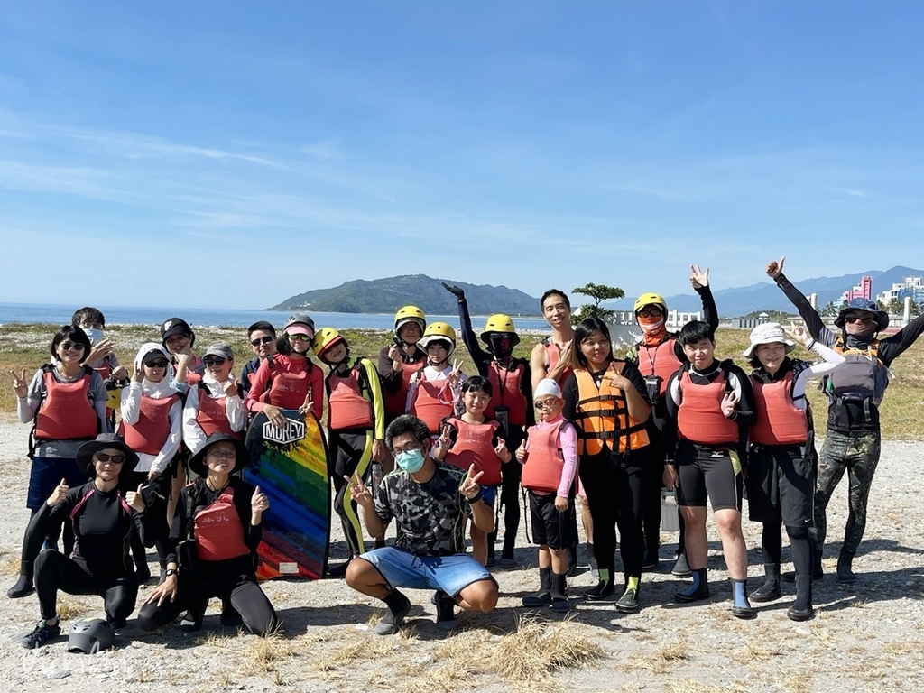 教練們紛紛自我介紹後,開始分組。接著就是我很不喜歡也不擅長的自我介紹,含糊地的自我介紹過後,教練開始教我們如何操作獨木舟的基本知識和在海上的安全資訊。這次我們除了在美崙溪的溪口划獨木舟,還有機會體驗海泳。