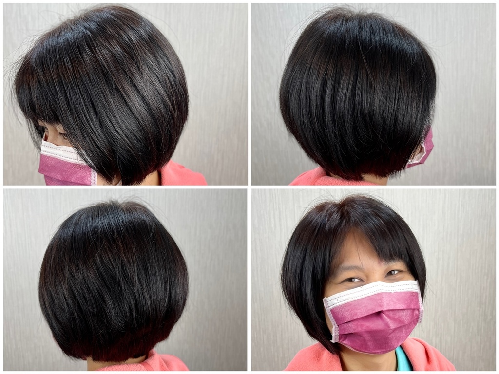 最後把頭髮吹乾,做完閃耀柔潤護2段後,頭髮整個變得柔順許多。接著和設計師討論頭髮要剪成什樣樣子,設計師建議我以後染髮只要染白髮髮根就好,這樣以後染髮,髮色才會出來。下次想要染不同的髮色試試看。