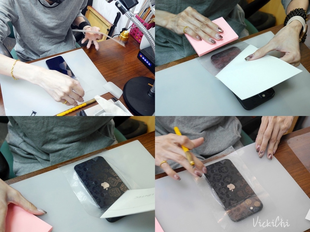 手機貼完螢幕保護貼後,接著就是把手機整隻包膜。